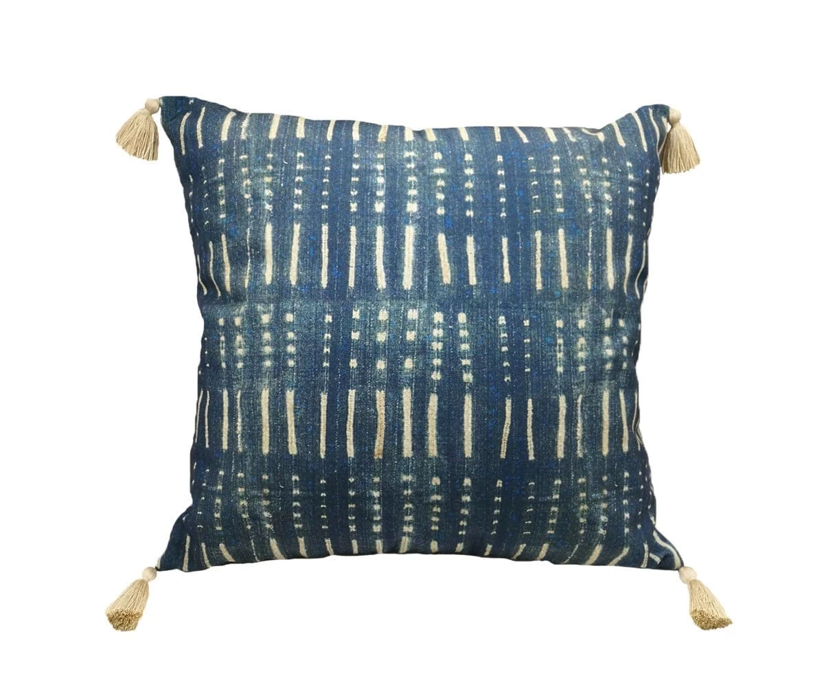 The Embroidered Batik Pillow cover features lively, eye-catching style. An homage to the intricate art of Indonesian batik, this pillow showcases a linear design punctuated with a carefully-placed dotted motif. Embroidered details bring this piece texture – topstitched silvery thread brings a whimsical, contemporary feel to this pillow, which is finished with elegant tassels. Made from a poly-canvas blend, this pillow cover is both durable and comfortable, and features a convenient invisible zipper closure. Easily layered with other pillows to provide a pop of color to your decor, this pillow also offers welcome support to those relaxing on a sofa or favorite accent chair. Note: pillow insert is sold separately.