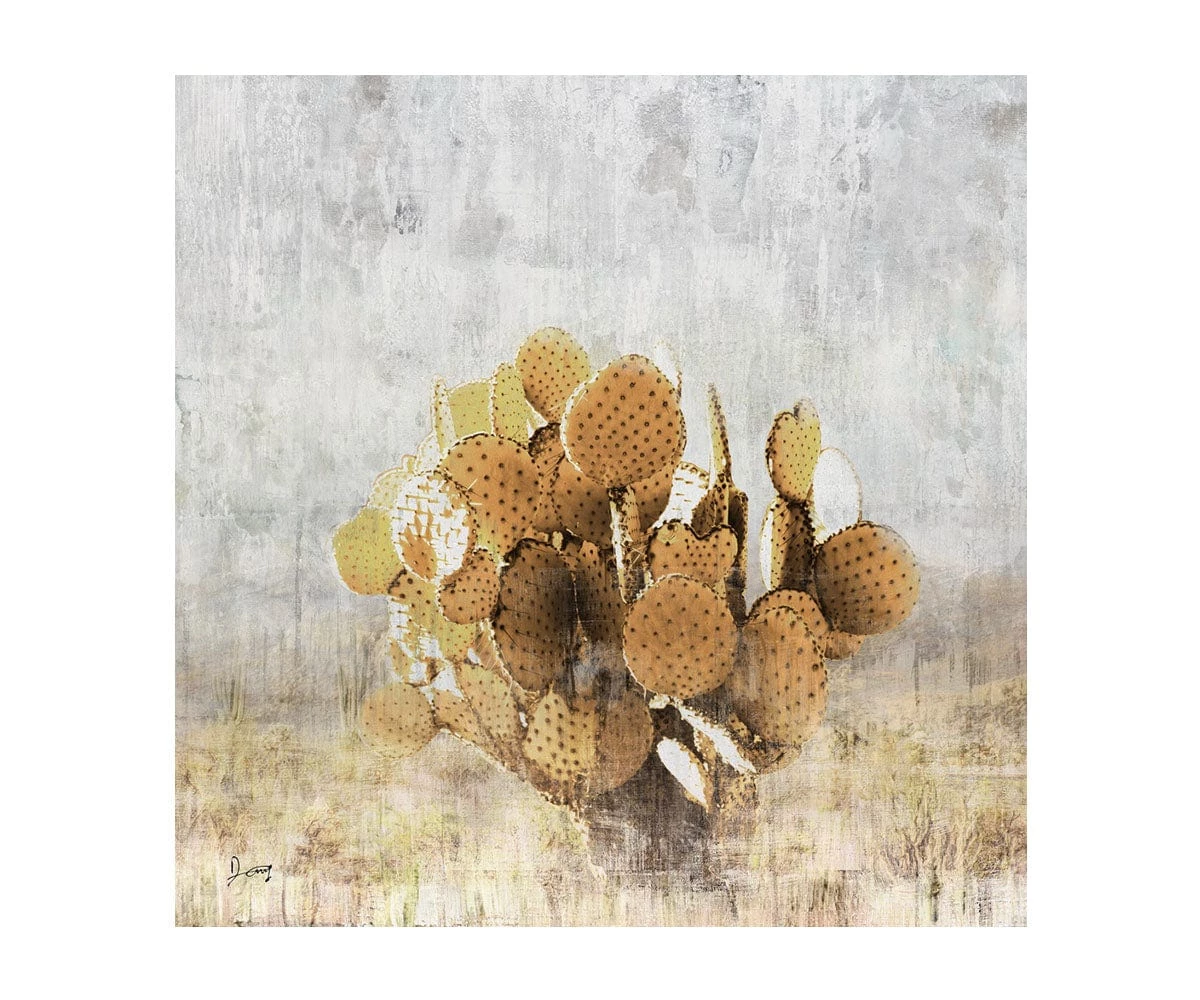 The Southwestern Ode Art portrays a lone cactus set against the hazy gray of a cloud-strewn sky. Depicted as though it were being viewed through the last drops of a gentle desert rain, this eye-catching piece blends warm desert hues of sunlit gold and sandy tan with hints of cool green and gray to create a style thatβs equal parts soothing and rustic. Add this piece to your collection as an homage to wide open spaces, unique desert flora and wild desert air.