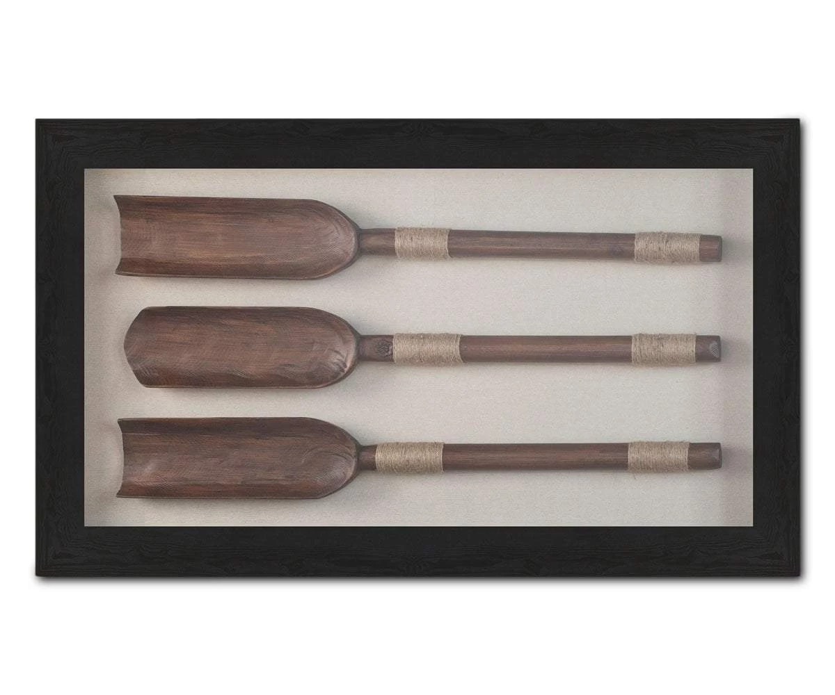 Displaying a range of shapes, textures and materials, the Aradox 3-Paddle Graphic adds warmth and interest to your walls. Includes a thick black frame for contrast.