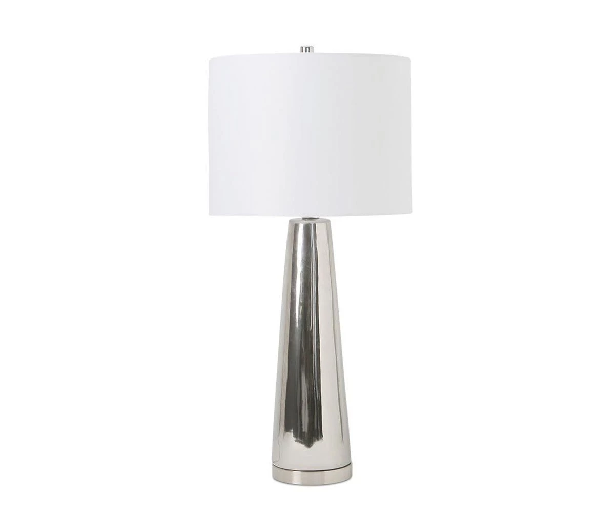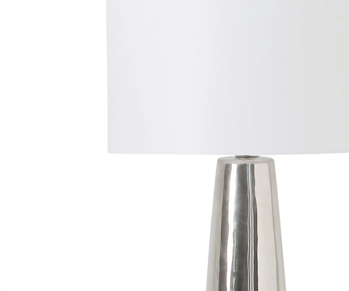 Add just the right amount of light to your reading area, bedside table, living room, or office with the contemporary Meraki Table Lamp and its three-way switch. The ceramic conic base in a shiny silver finish adds brilliance to your space and is complemented by the crisp, white cotton shade. Due to its simple, yet elegant design, this piece easily coordinates with many styles of decor.