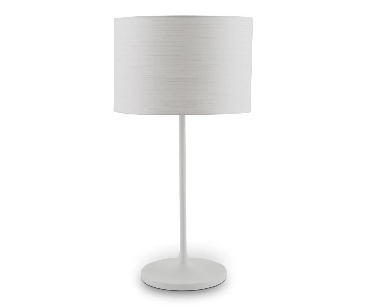 The slender profile of the Maddalena Table Lamp lends an elegant touch to any tabletop. The barrel-shaped Japanese paper shade provides a soft glow atop a slender stem transitioning from a wide base in matte white painted steel.
