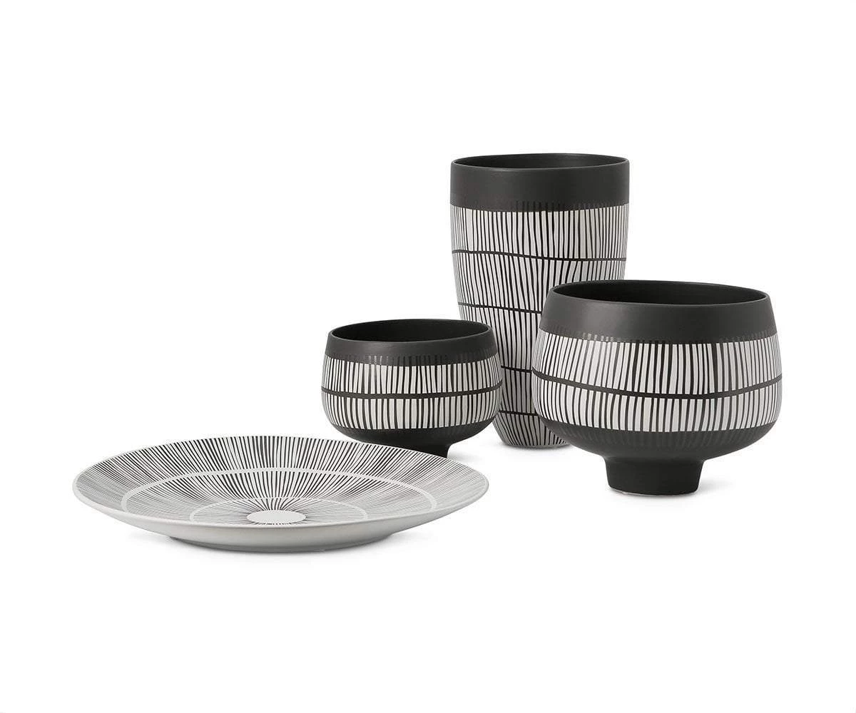 Choose from the assortment of Delle Ceramics and adorn your accent tables or shelves with eye-catching home decor. These pieces display an intriguing pattern influenced from tribal art. Whether youβre looking for a new decorative bowl, plate or pot, this collection easily becomes a focal point in the room.