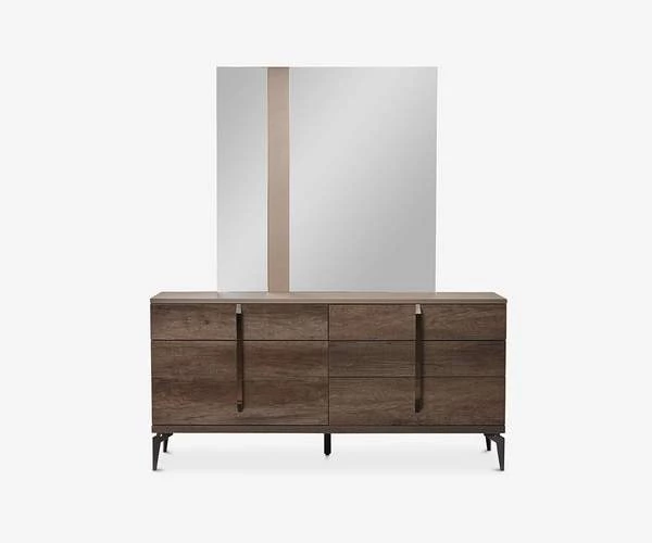 The Akana Mirror, made in Italy, is a beautiful addition to your dresser. Simple clean lines define this piece with a vertical band of neutral set off-center for dramatic effect. Designed to be both practical and beautiful, it enhances your bedroom decor.*Dresser sold separately.