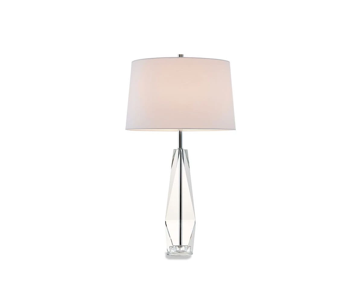 The ultra-glamorous Kira Table Lamp features a base thatβs entirely made of clear crystal. Cut to look like an elegant marquise diamond, this base tapers up to a cylindrical fabric lampshade which helps to dispel a soft light around your room. This contemporary piece can be easily incorporated into any number of decor styles, and is ideal for adding a touch of luxury to your space. Place the Kira Table Lamp in a darkened corner to instantly bring light to your room, and enjoy layering this piece with the rest of your lighting collection to illuminate your space with a sense of warmth and charm.
