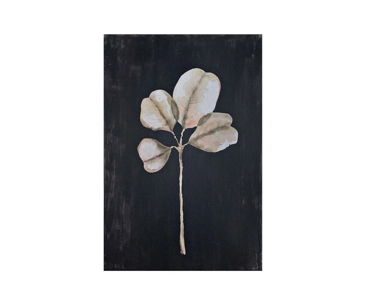 The Almisse Landscape Painting adds stark contrast and a minimalist vibe to any room. A leafed twig is painted in off-white and grey and is set against a black background.
