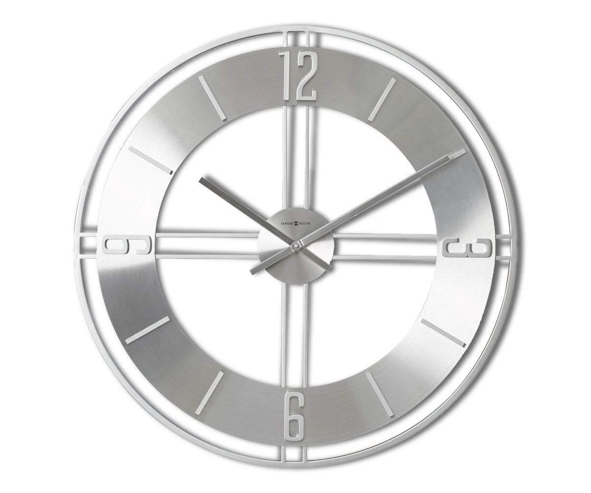 The Stapleton Wall Clock features Arabic numerals at 3, 6, 9 and 12 in a modern sans serif font. The open dial design and brushed nickel finish add a modern and simple to aesthetic to any room.